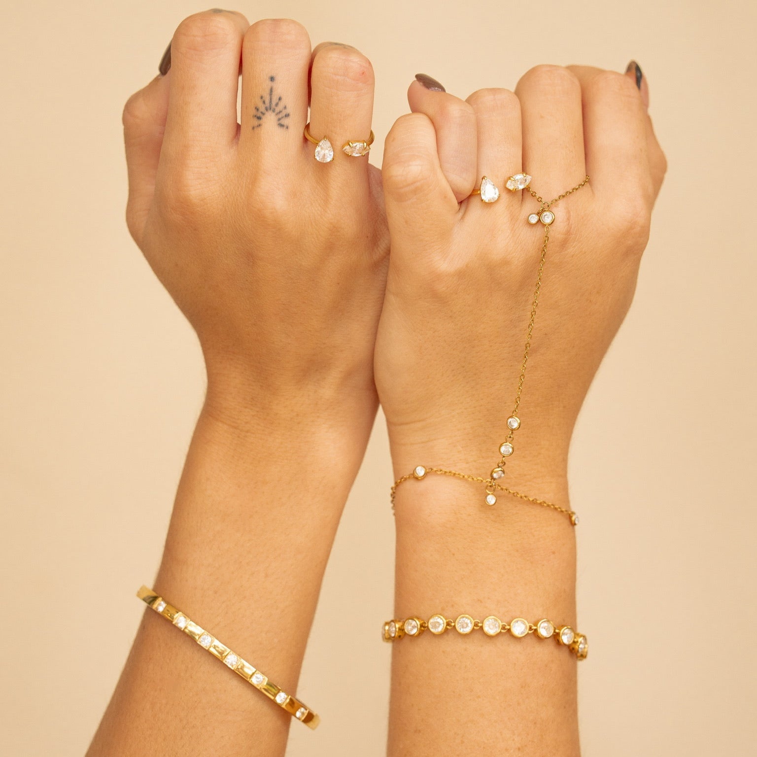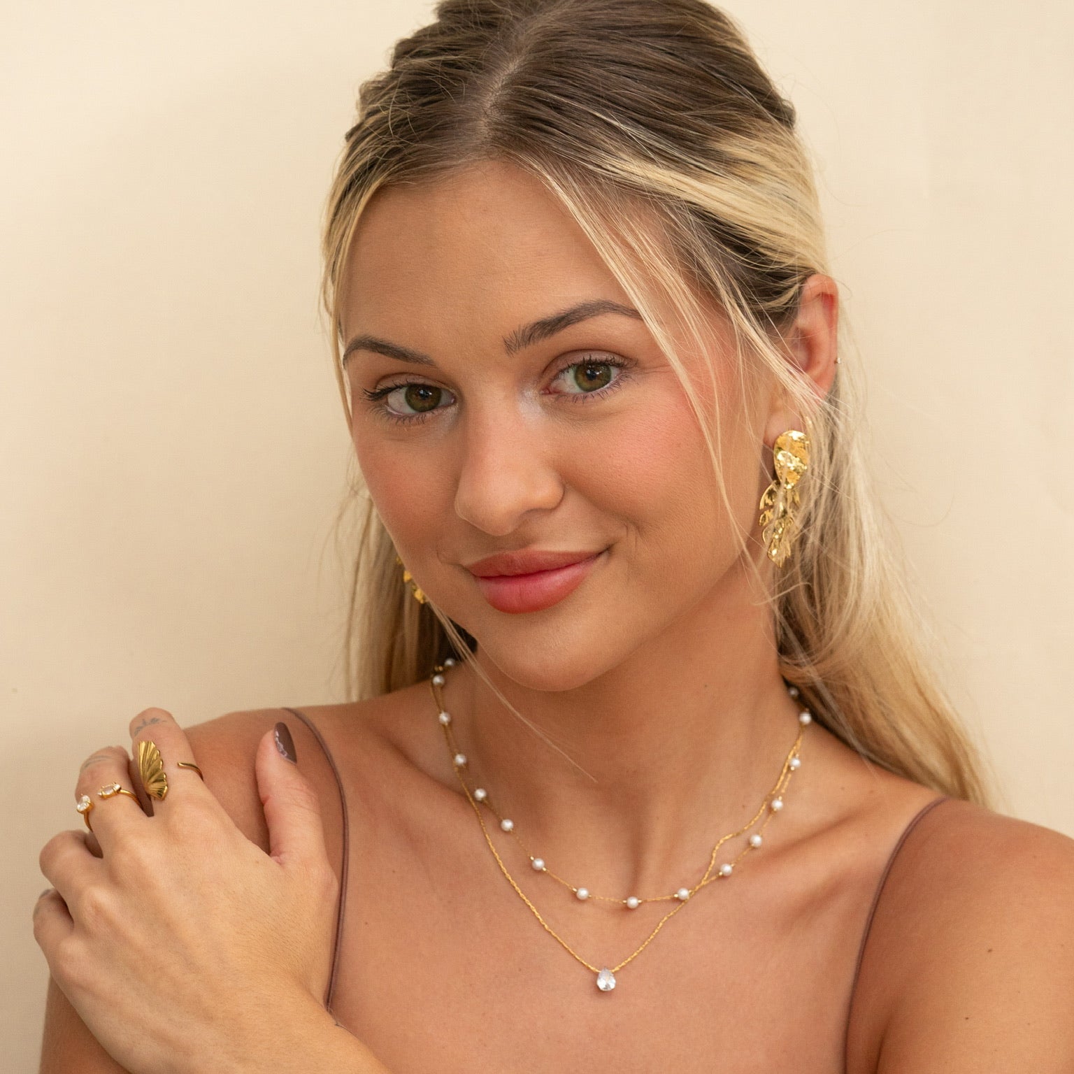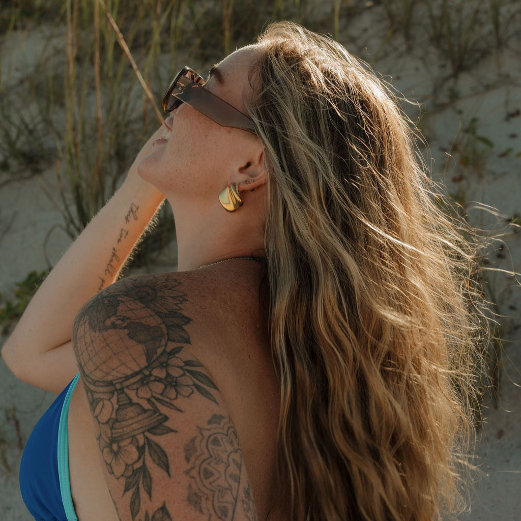 Each piece is crafted from marine-grade stainless steel and plated in real 18k gold. By nature, stainless steel and 18k gold will never tarnish. The result is jewelry designed to withstand water, sweat, and everyday wear—without ever losing its shine.