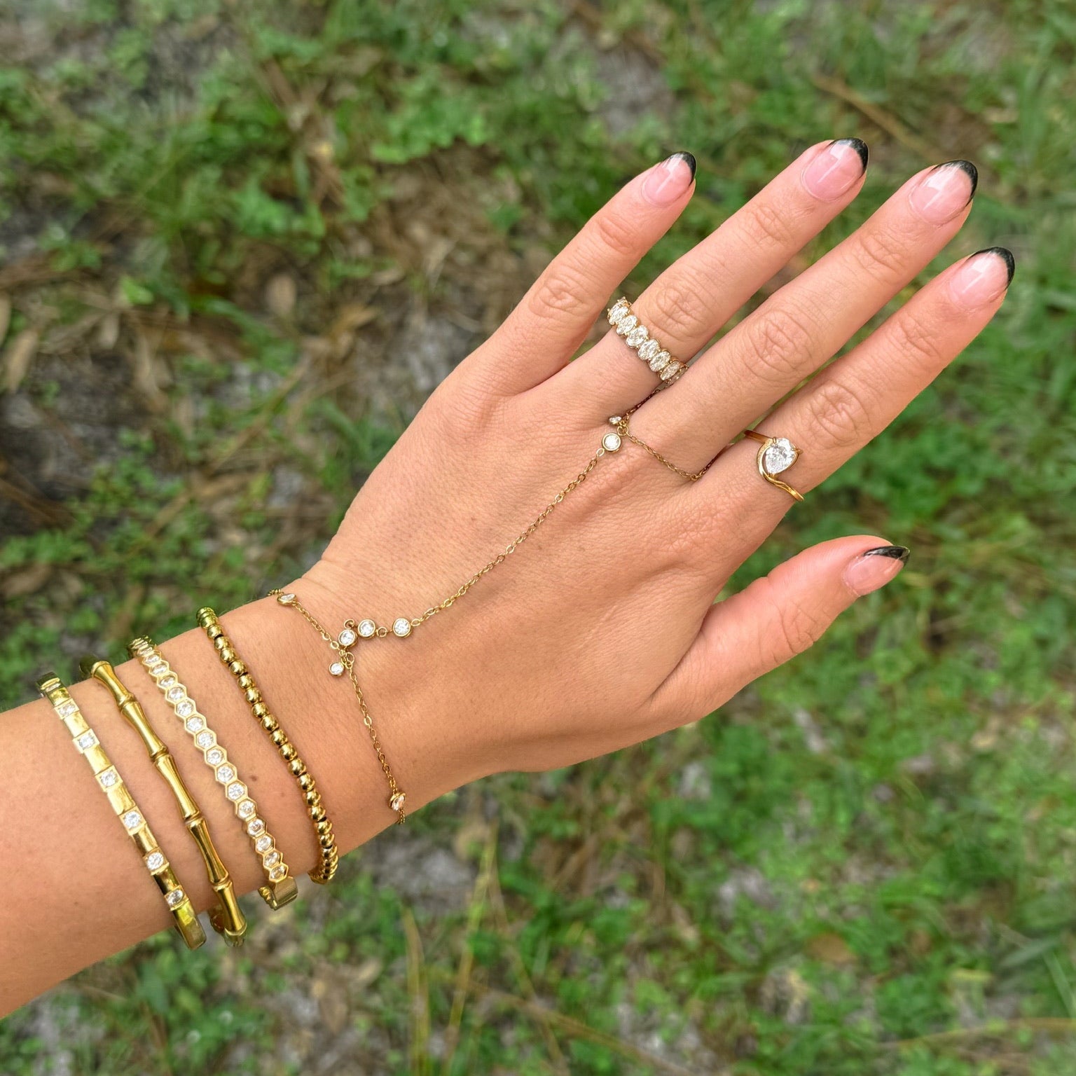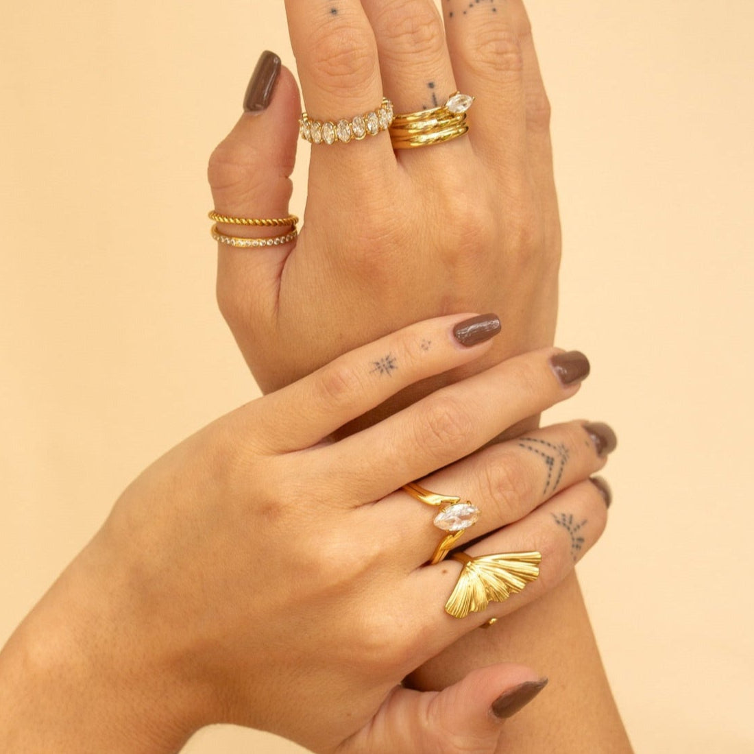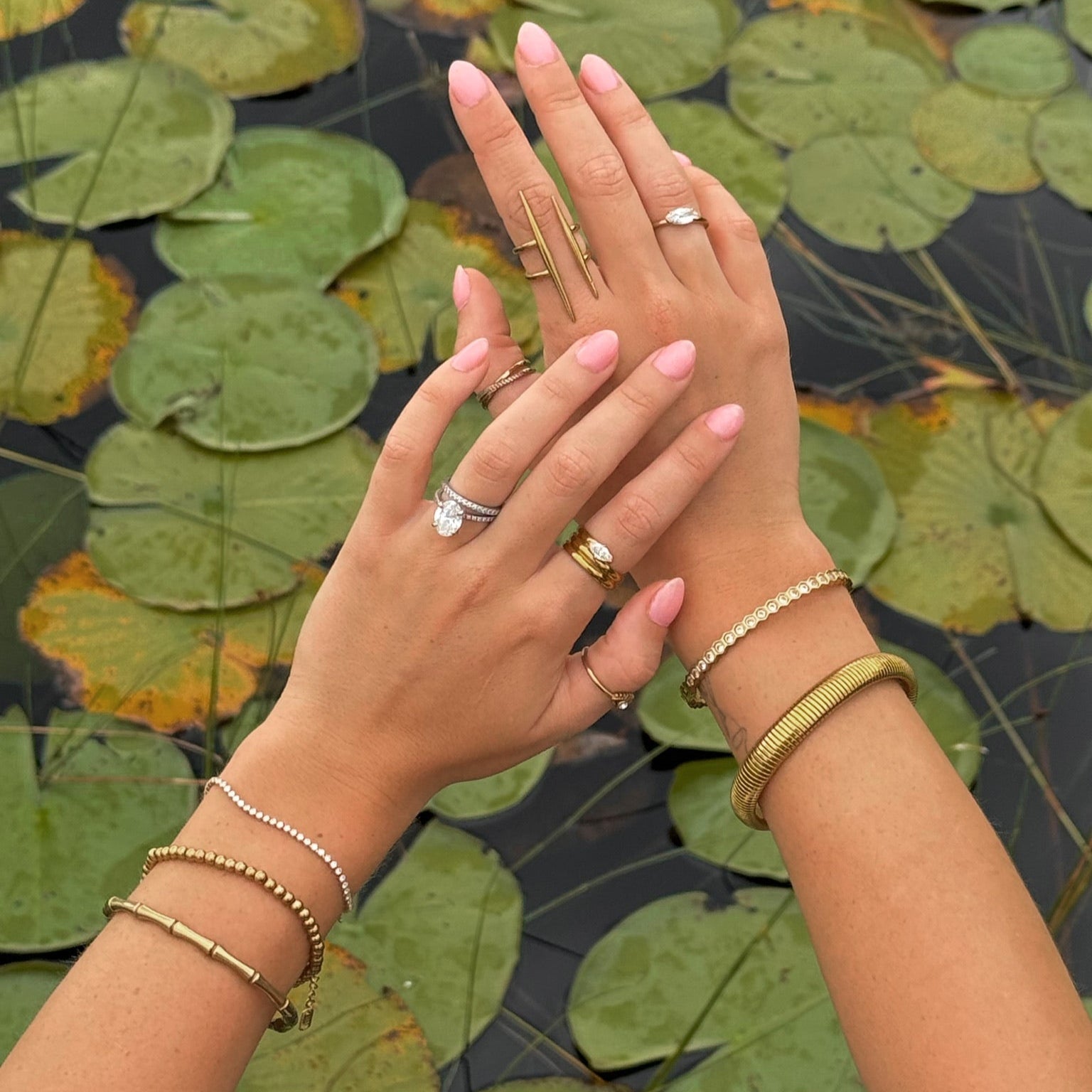 Each piece is crafted from marine-grade stainless steel and plated in real 18k gold. By nature, stainless steel and 18k gold will never tarnish. The result is jewelry designed to withstand water, sweat, and everyday wear—without ever losing its shine.